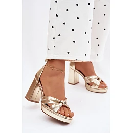 Dámské sandály na podpatku z umělé kůže zlaté model 22107198 - Boto