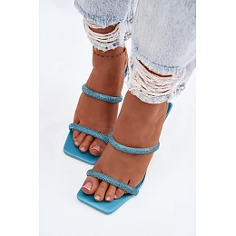 Dámské sandály na podpatku zdobené kamínky modré Vittoria