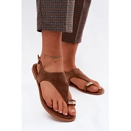 Dámské sandály Ploché S Zlatým Detalem Eko Semiš Hnědé Jelviane