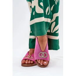 Sandały Damskie Z Ozdobą Na Płaskim Obcasie Eko Zamszowe Różowe Ralisses