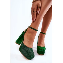 Skvělé dámské sandály z materiálu pokrytého třpytivým brokátem. Zapínání kolem kotníku na přezku. Sandály jsou nasazeny na jemné platformě a podpatku v podobě sloupku. Mimořádně módní střih s hranatou špičkou. Tento model je perfektním řešením na párty s přáteli nebo rande. Nečekejte a nakupujte ještě dnes! Při výběru velikosti použijte tabulku velikostí.
