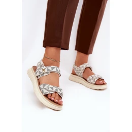 Materiałowe Sandały Damskie Na Platformie Beżowe Leriot