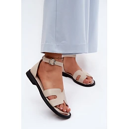 Dámské sandály z pravé kůže na ploché podrážce model 22126109 Béžové - VINCEZA