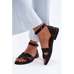 Dámské sandály z pravé kůže na ploché podrážce Vinceza 62305 Černé