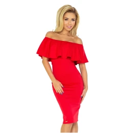 Dámske šaty 138-2 Marbella NUMOCO - červená farba - vyrobené z kvalitného a na dotyk príjemného materiálu - s veľkým módnym volánom - bočné zapínanie na zips - na špeciálne príležitosti aj každodenné nosenie