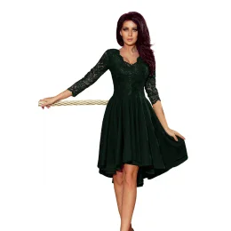 Dámske šaty 210-3 NICOLLE NUMOCO - zelené - asymetrický strih - trojštvrťové rukávy - hlboký výstrih zdobený čipkou - zadná časť sukne je predĺžená Zloženie materiálu: 70% viskóza + 30% polyester