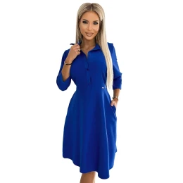 Dámske šaty 286-6 SANDY NUMOCO - modrá farba - košeľové šaty - zapínanie na gombíky - s trojštvrťovými rukávmi - z príjemného málo elastického materiálu na dotyk - dĺžka ku kolenám