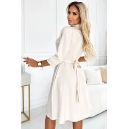 Dámské šaty 286-7 SANDY NUMOCO - béžová barva - košilové šaty - zapínání na knoflíky - s tříčtvrtečními rukávy - z příjemného málo elastického materiálu na dotek - délka ke kolenům