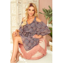 Dámske vzdušné šaty 292-3 Numoco - voľnejší strih - dvojité šifónové rukávy - široké ramienka - sťahovanie v páseMateriálové zloženie: 95% polyester + 5% elastan