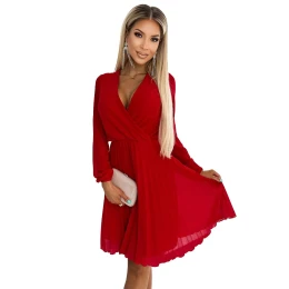 Dámske šaty 313-13 ISABELLE NUMOCO - červená farba - riasený strih - otvorený dekolt - dlhé rukávy - dĺžka sukne nad kolená