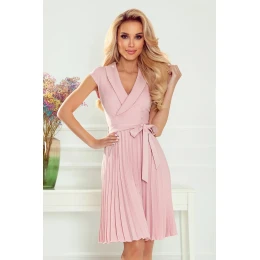 Elegantné šaty 385-1 WENDY Numoco - midi šaty - krátke rukávy - na zaväzovanie - prekrížený dekolt - riasená sukňa
