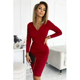 Dámske šaty 403-2 ANGELA NUMOCO - bordová farba - elegantné dámske šaty - dlhé rukávy - zapínanie na zips na chrbte - hrubší príjemný materiál