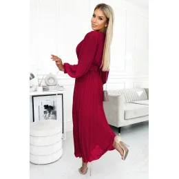 Dámské šaty 414-9 Numoco - řasené šaty z šifónu - překřížený dekolt - dlouhé rukávyMateriálové složení: 95% polyester + 5% elastan