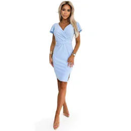 Dámske šaty 479-6 NINA NUMOCO - modré - výstrih - krátke rukávy, opasok - mierne elastický materiál