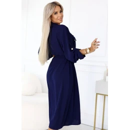 Dámské šaty 531-6 Numoco basic - tmavě modrá barva - košilový typ - zapínání na zlaté knoflíky - vázání v pase - zdobená kapsami - s límečkem