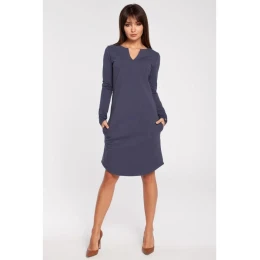Jeden z najobľúbenejších strihov - šaty áčkového strihu s výstrihom a zaobleným lemom, ktorý predlžuje nohy. Mäkká bavlnená zmes, dlhé rukávy a bočné vrecká poskytujú týmto šatám maximálne pohodlie.
