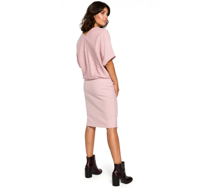 Mimoriadne pohodlné šaty z pružného obojstranného úpletu, kde je ceruzkový spodný diel kombinovaný s voľným vrškom s kimonovými rukávmi. Pohodlie a elegancia v jednom. Šaty sú bez podšívky.