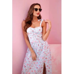 Tieto romantické dámske šaty s módnym vzorom sú ideálnou voľbou na teplé dni. Model so širokými ramienkami a roztomilým zaväzovaním na ramenách podčiarkuje ženský pôvab a dodáva stylingu ľahkosť. Priliehavý vrchný diel s riasením krásne zvýrazňuje poprsie, zatiaľ čo mierne rozšírená sukňa zaručuje voľnosť pohybu. Vďaka ľahkému a vzdušnému materiálu sú šaty mimoriadne pohodlné na nosenie a ich midi dĺžka je ideálna na bežné nosenie aj na špeciálne príležitosti. Veľkosť je univerzálna a bude vhodná pre ženy nosiace veľkosť S, M alebo L.