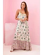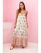 Tieto výnimočné dámske šaty bez ramienok sú ideálnou voľbou na teplé letné dni. Sú vyrobené z priedušnej viskózy a vďaka orientálnym motívom a jemnému volániku v spodnej časti zaručujú nielen pohodlie pri nosení, ale aj štýlový vzhľad. Vrchnú časť šiat zdobia zlaté detaily, ktoré krásne odrážajú svetlo a dodávajú celému kúsku jemný lesk. Voľný strih zaručuje, že šaty netlačia na tele a sú ideálne na prechádzky, dovolenky alebo letné večierky. Môžete ich skombinovať so sandálmi, klobúkom a jemnými šperkami a vytvoriť tak romantický ženský štýl. Veľkosť je univerzálna a hodí sa pre dámy vo veľkostiach S, M alebo L.