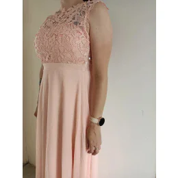 Společenské dámské šaty. Vrchní část z luxusní krajky. Zadní část šatů z prošívané gumy pro komfortní obepnutí postavy. Spodní část z růžového tylu. Délka až po zem.