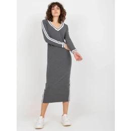 Tmavosivé midi teplákové šaty s výstrihom do V.