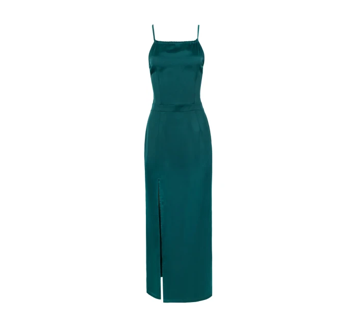 Veľmi ženské šaty s výstrihom bez ramienok. Vďaka dlhej siluete a vysokému rozparku vpredu sa budete cítiť sexy a sebavedomo. Výstrih je nastaviteľný vďaka šnúrkam na chrbte.