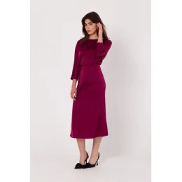 98 % polyester 2 % elastan DETAILY VÝROBKU: tkaný satén trojštvrťové netopierie rukávy midi dĺžka bateau výstrih tenký viazaný pás skrytý zips vzadu bez podšívky Naša modelka je 168 cm vysoká a nosí veľkosť S Navrhnuté a vyrobené v Poľsku