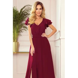 Dámské šaty 310-5 Numoco - dlouhé šaty - dekolt do tvaru "V" - široká ramínka s volánky - stahování v pase