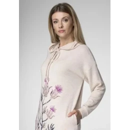 Košile má kapuci se stahujícími šňůrkami. Přední díl košile je ozdobený potiskem s rostlinným motivem. Model má módně prodloužený zadní díl. Na úrovni boků jsou pohodlné kapsy.