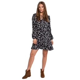 Krásné rozevláté mini šaty se zavazováním ve výstřihu. Má bufetové rukávy zakončené jemnou gumičkou. Šaty jsou bez podšívky. Skvěle se hodí k mnoha podzimním stylizacím. Nebojte se na sebe hodit lehký kabát a zapůsobit svým vzhledem!