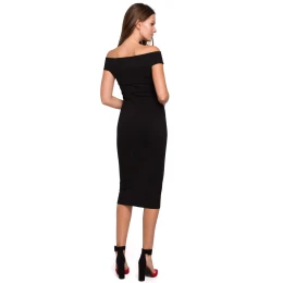 Tyto extrémně ženské šaty v midi délce jsou ideální volbou, pokud chcete odhalit ramena, dělají to dokonale! Díky vypasovanému střihu se budete cítit krásná a sexy a elastický úplet vás nebude omezovat v pohybu.