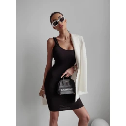 - model s vysokým výstřihem zdůrazňujícím minimalistický styl,