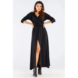 Maxi, mimořádně ženské šaty. Dlouhé rukávy a délka jsou ideální pro chladnější dny. V kombinaci s kozačkami a koženou bundou bude dokonalým řešením na rande, do práce nebo na setkání s přáteli. Zip na přední straně dodává šarm a ženskost. Vyrobeno z přírodní, tělu příjemné viskózy. Produkt je vyroben v Polsku.
