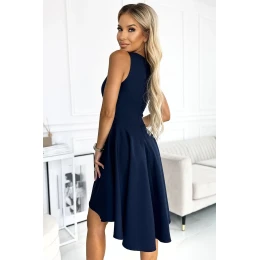 Dámské šaty 397-2 NUMOCO - tmavě modrá barva - z příjemného materiálu na dotyk - s modrými třpytkami - bez rukávů - vypasovaný střih - vhodné na tanec - zapínání vzadu na skrytý zip