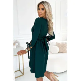 Dámské šaty 195-11 ALICE NUMOCO - zelená barva - z vysoce kvalitního materiálu - zakulacený výstřih - s mašličkami na rukávech - s vázáním vzadu na mašli - rozšířený střih