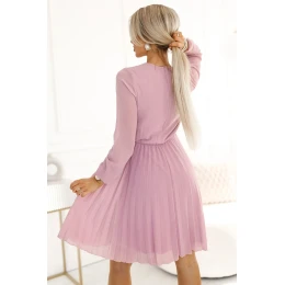 Dámské šaty 313-16 ISABELLE NUMOCO - starorůžová barva - řasený střih - otevřený dekolt - dlouhé rukávy - délka sukně nad kolena