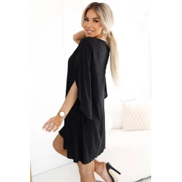 Dámské šaty 597-1 LIVIA NUMOCO - černá barva - z elastické látky se třpytkami - dlouhé motýlí rukávy - výstřih do V decentně zvýrazňuje krk a opticky prodlužuje horní část těla - trapézové šaty s volným střihem do tvaru A