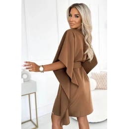 Dámské šaty 287-39 SOFIA NUMOCO - cappucino barva - volnější střih "motýl" - tříčtvrteční rukávy - v pase na zavazování - délka ke kolenům