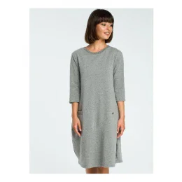 Pohodlné šaty s 3/4 rukávy. V chladnějších dnech můžete šaty použit jako tuniku ke kalhotám nebo leginám. Šaty mají kulatý výstřih a kapsičku v předu.