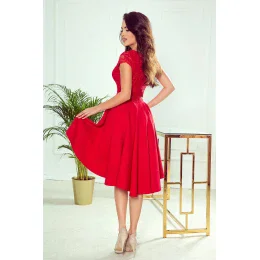 Exkluzivní šaty 300-2 Numoco - ideální pro vzácnou příležitost - zdobený výstřih ve tvaru V, který zdůrazňuje dekolt - horní část zdobená krajkou - dvouřadá volánová sukně dělá z modelu velmi elegantní kousek
