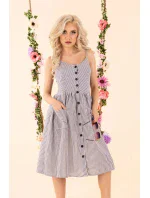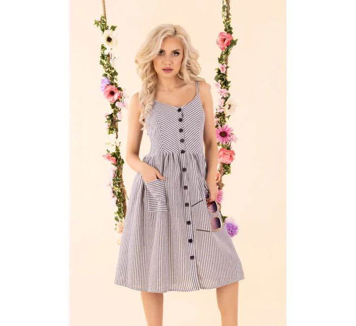 Dámske letné šaty na ramienka prúžkované s vreckami a zapínaním na gombíky.