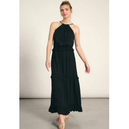 Dámske plážové šaty značky Muydemi, vyrobené zo 100 % viskózy, ideálne na horúce letné dni. Šaty sú voľné, jednoduchého strihu, s dĺžkou po členky, so zaväzovaním na chrbte.