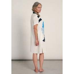 Dámské plážové šaty značky Muydemi. Šaty jsou vyrobeny ze 100% viskózy, ideální pro horké letní dny. Šaty jsou volné, jednoduchého střihu, s délkou nad kolena. Šaty mají krátký rukáv a výstřih do V.