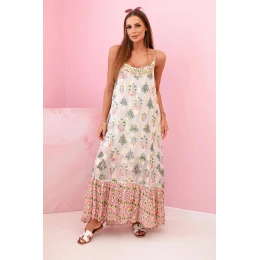 Dámské šaty na ramínka ze světlé viskózy s volánem růžový
