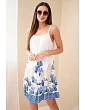 Tieto dámske šaty bez ramienok s potlačou sú ideálnou voľbou na teplé dni pre ženy, ktoré oceňujú ľahkosť a pohodlie v módnom dizajne. Vďaka vzdušnému strihu sa šaty krásne prispôsobia postave a zabezpečia voľnosť pohybu a pohodlie pri celodennom nosení. Vrchnú časť modelu zdobí jemné riasenie, ktoré decentne zvýrazňuje výstrih a dodáva celku ženský charakter. Tenké ramienka dodávajú šatám ľahkosť a sú skvelou voľbou na leto, dovolenku alebo prechádzku po meste.