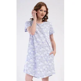 Dámske bavlnené šaty Nature s krátkym rukávom. Tieto jednofarebné šaty s okrúhlym výstrihom a vreckami zdobia jemné biele kvety. Použitý bavlnený materiál je príjemný a pružný na dotyk. Šaty sú pohodlné, vhodné na spanie aj na každodenné nosenie.