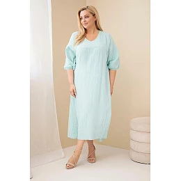 Dámské šaty Plus Size bavlněné mušelínové s výstřihem do V mentolová