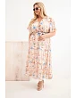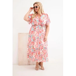 Plus veľkosť dámske kvetinové šaty s kravatou ružová