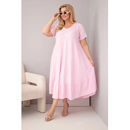 Dámske plus size šaty s krátkymi rukávmi a volánom z ľahkej viskózy v cukríkovo ružovej farbe