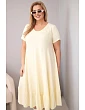 Dámske plus size šaty s krátkymi rukávmi a volánom z ľahkej viskózy žltej farby